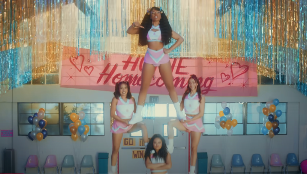 Lastly, it’s important to notice Megan Thee Stallion has kept up a color scheme within her branding. Pink and blue are used throughout the video on lockers, locker art, the graffiti at the skate park, and the Cheerleader uniforms. These colors matter because they are the colors used in the Transgender flag. Again, this is not a coincidence as there’s been a lot of discovery and conversation around the validity of the genders that celebrities and elites portray. Megan is frequently speculated to be a man, and while I haven’t fed into this belief, this continued color scheme is making me question things. I don’t have any evidence to prove my doubts or others’ speculations. Comment below what you think, til next time.