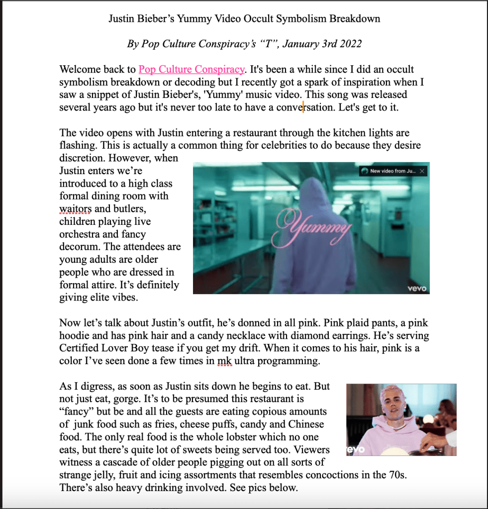 Justin Bieber’s, “Yummy”, click here for the full article